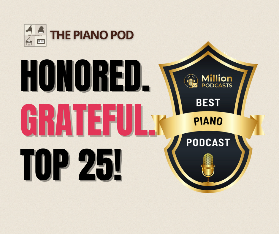 The Piano Pod has been named one of the Top 25 Piano Podcasts by MillionPodcastsâa curated platform that highlights standout shows for collaboration and outreach.
